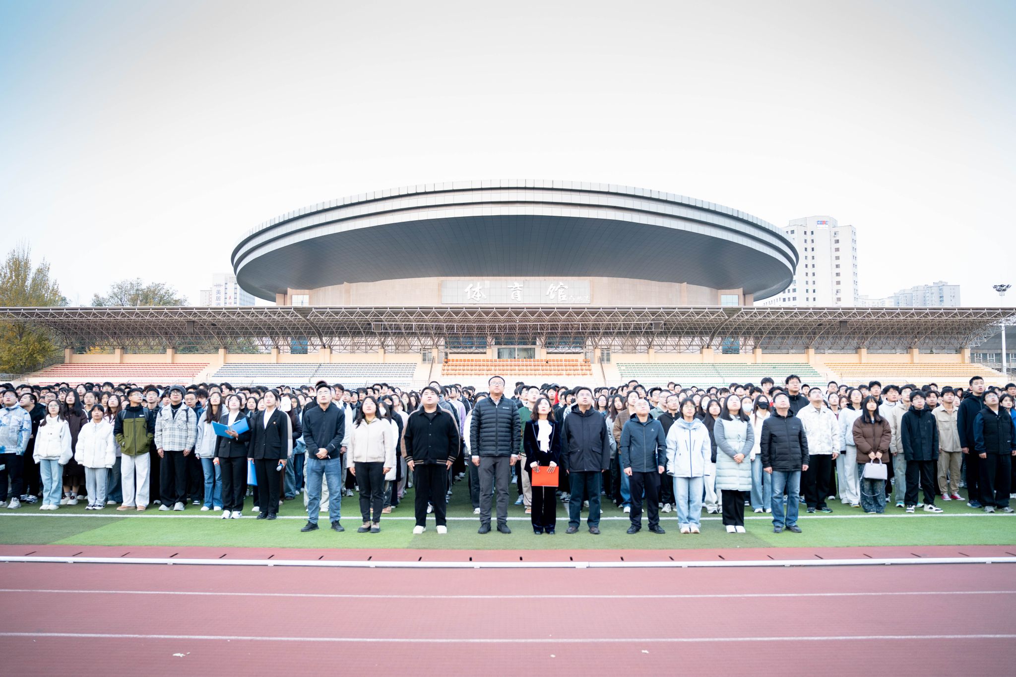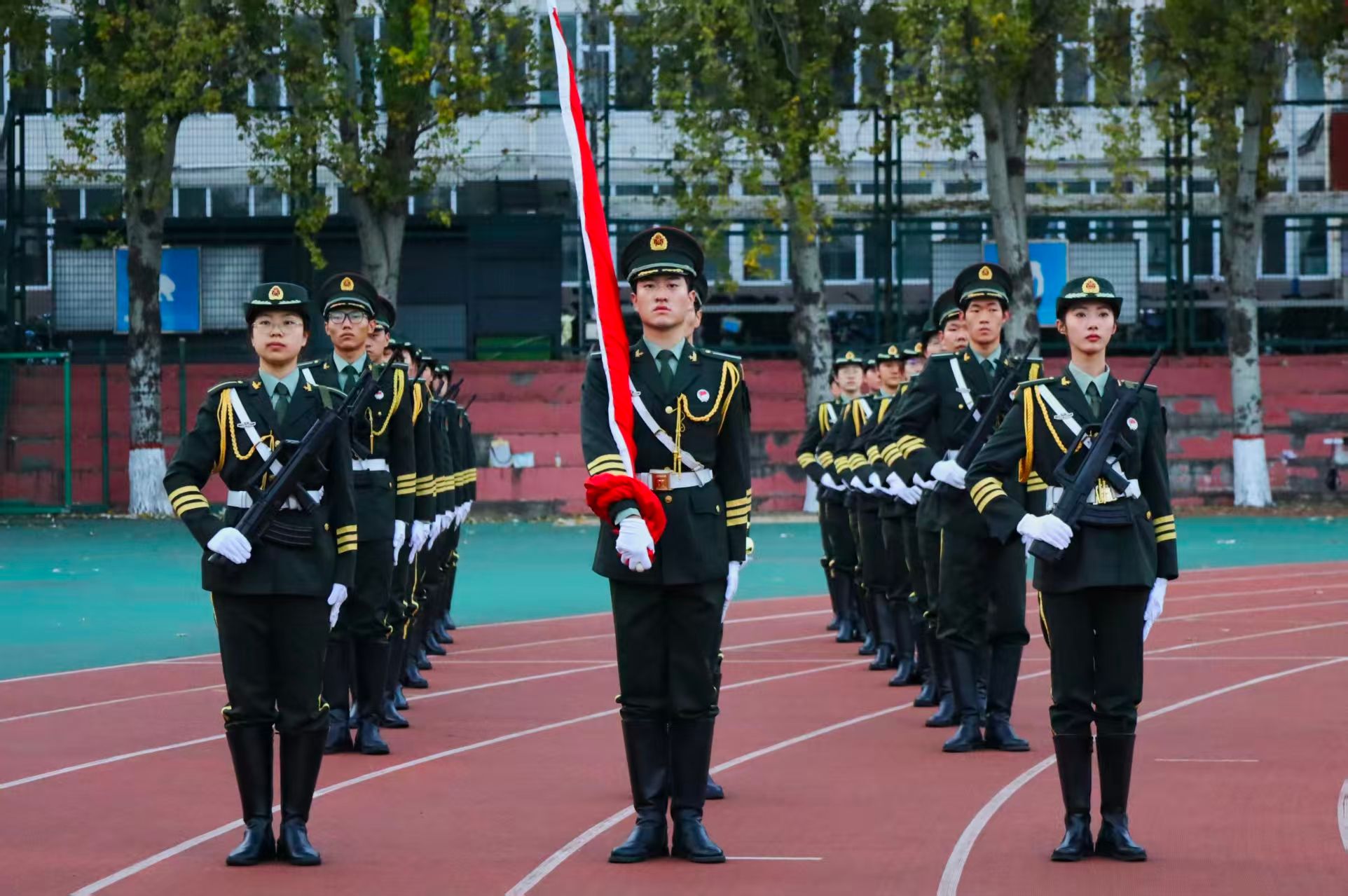 11月3日,晨雾初散,朝阳破云,坞城校区操场晨光熹微,太阳成集团tyc7111领导班子、辅导员以及全院学生以挺拔姿态列队肃立,静候升旗仪式启幕。7时整,国旗班迈着正步护送五星红旗入场,红绸猎猎,与晨光交相辉映。当《义勇军进行曲》的旋律响起,升旗手振臂展旗,太阳成集团tyc7111全体师生肃立行注目礼,嘹亮的国歌在操场上空回荡,每一句歌词都激荡起师生心底的爱国热忱。