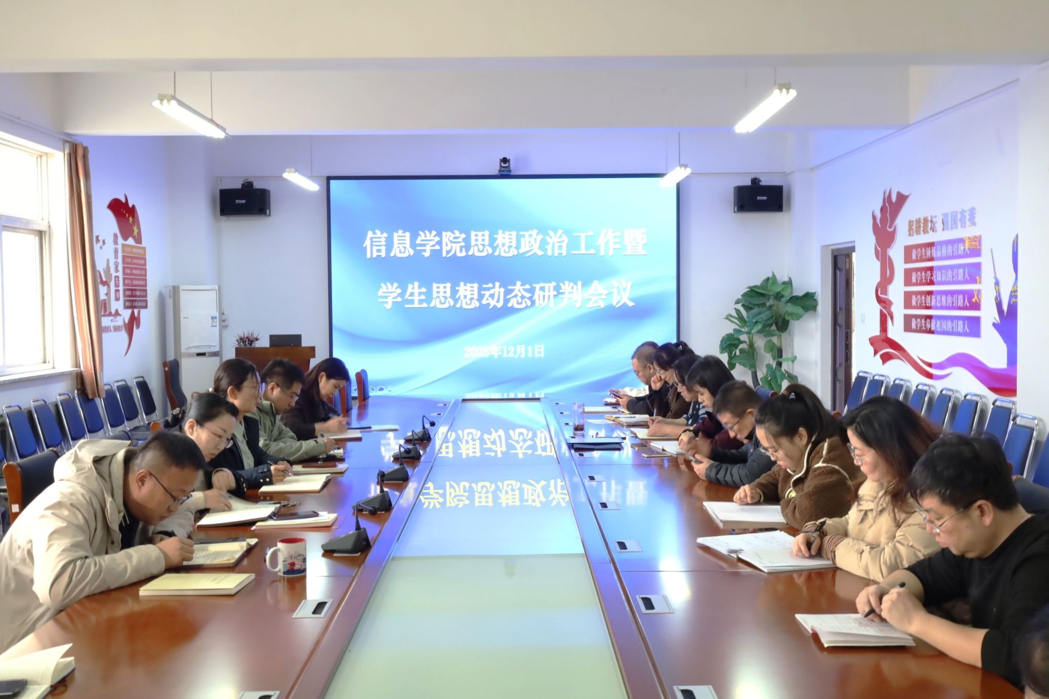 通过充分研讨,会议全面分析了当前学生思想政治领域面临的新形势、新特点,研判了可能存在的潜在风险与现实挑战,进一步梳理并明确了学院当前学生思想政治的整体状况、主流态势与关键薄弱环节,厘清了下一阶段工作的核心目标、重点任务与具体推进方向。会议号召全体思政工作队伍,要以更加饱满的政治热情、更加扎实的工作作风,将思想政治工作融入教育教学、管理服务全过程,持续提升育人实效。