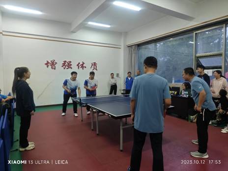 白露滋园菊,秋风落槐南。在这充满希望、收获、喜悦和奋进的金秋时节,我校第十三届“健安杯”教职工乒乓球比赛于2023年9月18日至10月14日在体育馆和校工会乒乓球室举行。比赛项目分为男女混合团体赛和男子双打、女子双打、混合双打个人赛,均分两个阶段进行。比赛秉承公平、公正、公开的原则激烈而有序地进行,现场气氛活跃,比赛精彩迭出,现场观众不时发出欢呼声和热烈的掌声。同时,这次比赛也时刻牵动着不能去现场加油助威的教职工的心,也让全院教职工的心也凝聚得更加紧密。