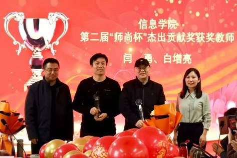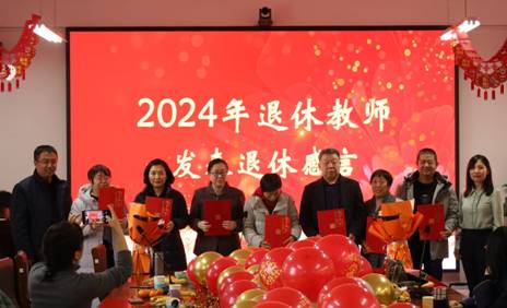 高书记、李院长在2024年退休教师全玮、南志红、尚成国、原燕萍、李平珍、李建芬、李爱军依次发表退休感言后为他们颁发了荣退证书,为闫勇、白增亮两位教师颁发了学院第二届“师尚杯”杰出贡献奖奖杯。