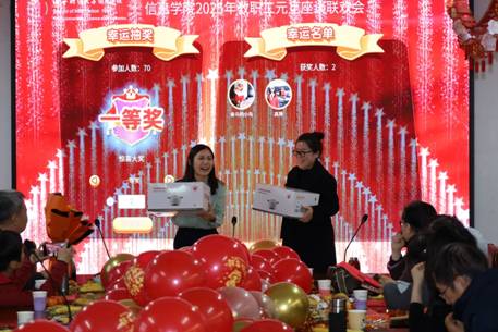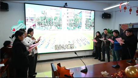 学院全体行政人员表演的《三句半》幽默风趣;数据科学与大数据技术教研室老师们则以饱满的热情唱响《国家》,抒发了大家的家国情怀;大学计算机基础课教研室全体教师表演的《精灵舞》灵动俏皮,尽显活力。最后,元旦座谈联欢会在全体辅导员合唱的《小美满》歌声中落下了帷幕。