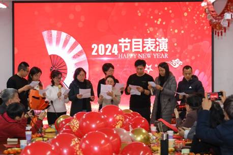 接下来的联欢会气氛热烈,大家齐聚一堂,在轻松愉快的氛围中交流互动。计算机科学与技术教研室老师们齐声合唱《上春山》,表达了大家对大自然和美好生活的热爱;信息管理与信息系统教研室全体老师带来的《舞蹈串烧》,让大家的情绪跟着一起跳动了起来;电子商务教研室合唱的《送别》,悠扬的歌声寄托着深情。此刻,每个人的脸上都绽放着灿烂的笑容,尽情享受着这来之不易、温馨美好的相聚时刻,欢声笑语交织成一幅动人的画面,在这方空间中留下了难忘的回忆。