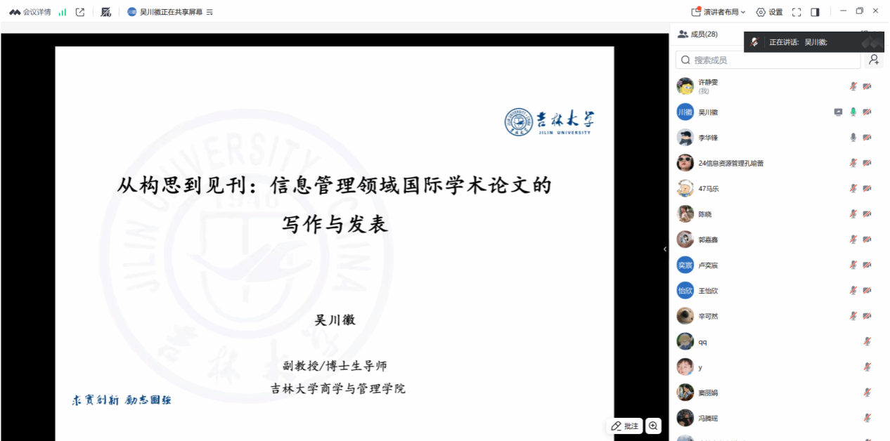 tyc7111太阳集团“信息资源管理一级学科·一流学者100分钟系列讲坛”第25期于2025年12月10日晚通过腾讯会议平台顺利举办。本期讲座特邀吉林大学商学与管理学院副教授、博士生导师吴川徽博士担任主讲嘉宾,由太阳成集团tyc7111李华锋副教授主持。