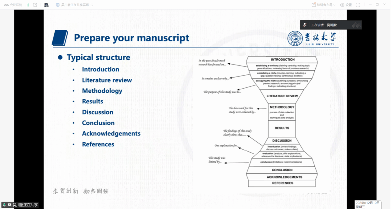 随后,主讲人结合自身丰富的审稿与发表经验,分析了英文期刊常见的拒稿原因、不同期刊审稿人的偏好差异以及稿件录用过程中的关键细节,为师生提供了极具实用性的投稿指导。
